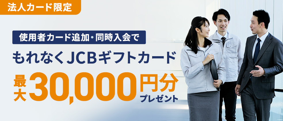 • 対象カード:JCB一般法人カード、JCBゴールド法人カード、JCBプラチナ法人カード