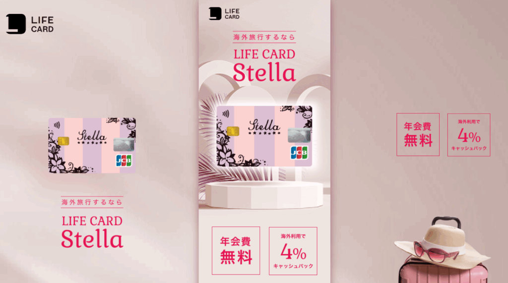ライフカードStella![]() | 初年度無料 2年目以降1,375円(税込) | 1.0% ※購入先によってポイントアップあり | JBC | - | Apple Pay、Google Pay | 国内旅行傷害保険、海外旅行傷害保険 | 海外ショッピング利用3%キャッシュバックなど |