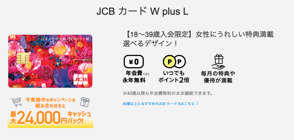 公式サイト:https://www.jcb.co.jp/promotion/ordercard/wplusl/index.html